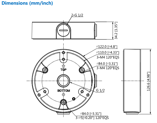 DAHUA PFA137 - DAHUA DH-PFA137 Water-proof Junction Box DIMENSIONS