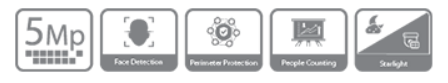 > WDR (120 dB), Day/Night (ICR), 3D DNR, AWB, AGC, BLC