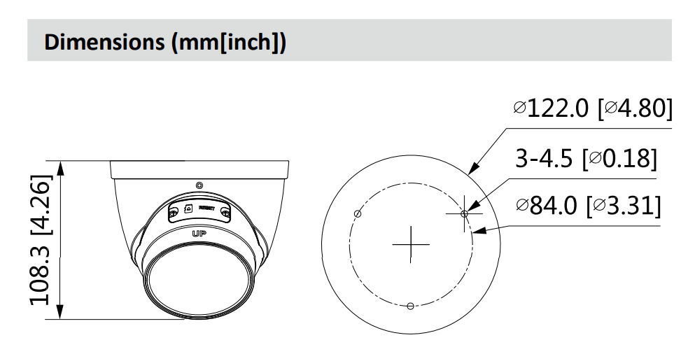 IPC-HDW5541TM-ASE- DAHUA DH-IPC-HDW5541TM-ASE 5MP WDR IR Eyeball WizMind Network Camera With People Counting Face Detection Perimeter Protection IPC-HDW5541TM-ASE Dimensions