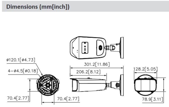 IPC-PFW5849-A180-E2- DAHUA DH-IPC-PFW5849-A180-E2 8MP IR Bullet WizMind Network Camera IPC-PFW5849-A180-E2 Dimensions