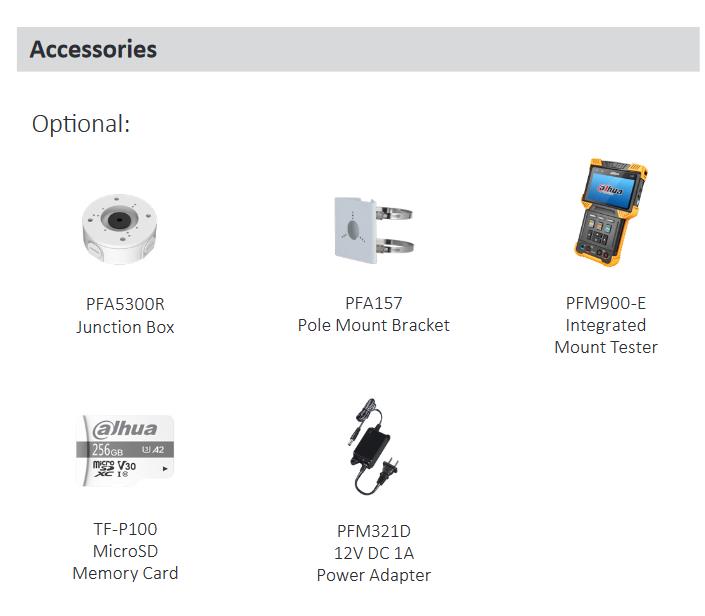 | Interoperability | ONVIF (Profile S/Profile G/Profile T); CGI; Milestone | ||||