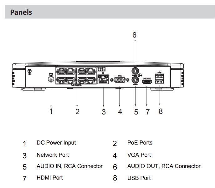 NVR4108-8P-4KS2/L- DAHUA DHI-NVR4108-8P-4KS2/L 4 Channel Smart 1U 1HDD 4PoE Network Video Recorder With P2P remote surveillance, video play on mobile device NVR4108-8P-4KS2/L REAR PANEL