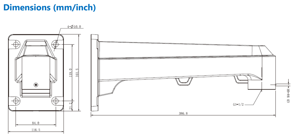 PFB710W - DAHUA DH-PFB710W Wall Mount Bracket DIMENSIONS