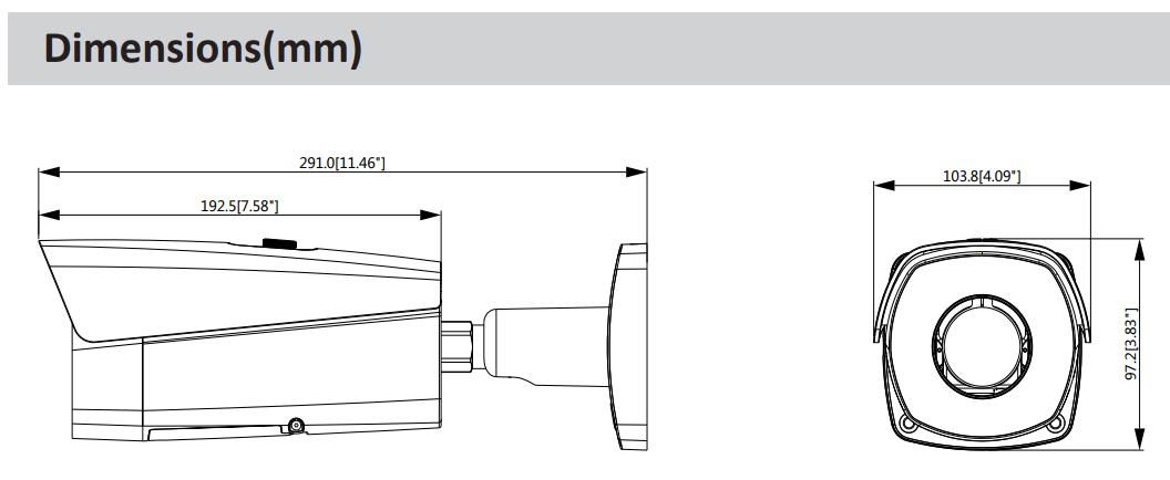 TPC-BF5401 - DAHUA DH-TPC-BF5401 Thermal Network Bullet Camera With DH-TPC-BF5401P Athermalized Lens (thermal) Various lens optional Micro SD memory, IP67, PoE, ePoE DH-TPC-BF5401N without logo Dimension