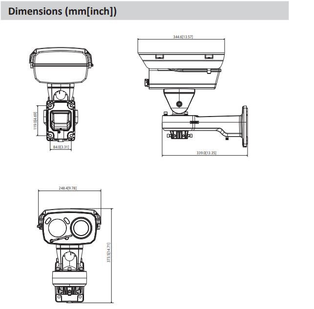 TPC-BF8621 - DAHUA DH-TPC-BF8621 Thermal Network Hybrid Bullet Camera With DH-TPC-BF8621P Support ROI, motion detection, color Palettes Support fire detection & alarm Intelligent Video System DH-TPC-BF8621N without logo Dimension