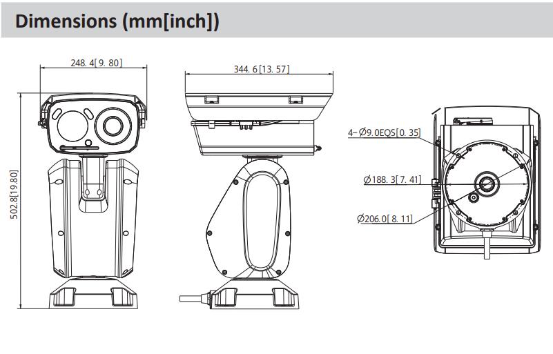 TPC-PT8621A - DAHUA DH-TPC-PT8621A Thermal Network Hybrid Pan & Tilt Camera DH-TPC-PT8621AP Support detection and alarm of fire and smog Athermalized lens(thermal) High thermal sensitivity (<40mK) DH-TPC-PT8621AN Without logo Dimension